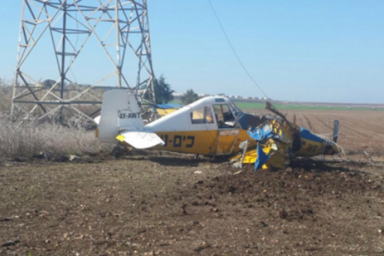 מטוס הריסוס באתר ההתרסקות בעמק יזרעאל // צילום: משטרת ישראל // מטוס הריסוס באתר ההתרסקות בעמק יזרעאל