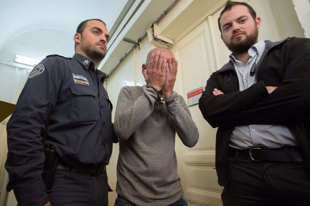 החשוד שנתפס בבית המשפט, היום // צילום: נעם ריבקין פנטון // החשוד שנתפס בבית המשפט, היום