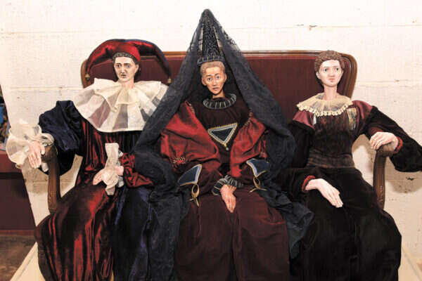הפסלים מירי ואדי שרוסטר (מימין) ליד סידרת הבובות החדשה בהשראת מגילת אסתר // צילום: דודו גרינשפן