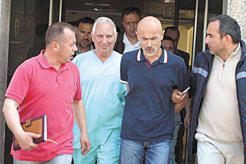 פרופ' זכי שפירא (בחלוק ירוק) נעצר בטורקיה ב־2007. בעקבות דרמת ירי במרפאה // צילום: ממשלת קוסבו