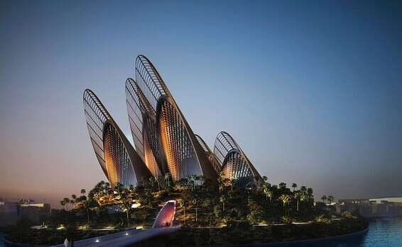 איך אפשר לפתוח תערוכה על בניינים מרשימים בלי אבו דאבי? המוזיאון הלאומי זייד שנראה כמו כנפיים עוצב על ידי האדריכל הבריטי פריטקר פריס-וינג.