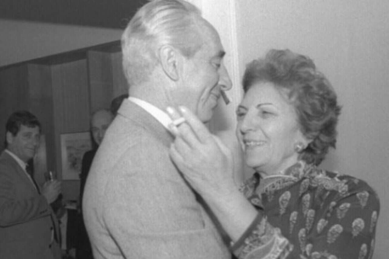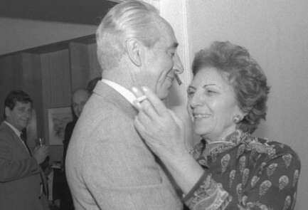 צילום: חנניה הרמן/ לע"מ // בני הזוג סוניה ושמעון פרס בחיבוק אוהב, בתמונה משנת 1985