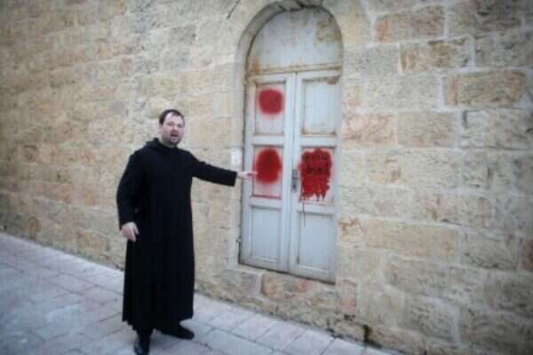"We will not allow anyone to undermine the coexistence between religions in Israel," Public Security Minister Gilad Erdan said on Sunday, after police discovered Hebrew graffiti on the walls of a famous Jerusalem church, in what appeared to be the latest vandalism attack by extremist Jews. "We will show zero tolerance to whomever harms the democratic foundations of Israel and its freedom of religion and we will apprehend those who carried out this heinous act," Erdan said. He said he had instructed police to give the vandalism case top priority. Prime Minister Benjamin Netanyahu also condemned the vandalism. Israel Police spokeswoman Luba Samri said anti-Christian slogans were found on the outer walls of the Dormition Abbey, a Benedictine monastery located just outside Jerusalem's Old City where Christian tradition says the Virgin Mary died. The graffiti included threats of violence, messages degrading Jesus, and a call for Christians to "go to hell." Nikodemus Schnabel, the Dormition Abbey spokesman, said the graffiti bore "very radical messages." Police are investigating but suspicion immediately fell on Jewish extremists who have for years vandalized Palestinian property, as well as mosques, churches, the offices of dovish Israeli groups and even Israeli military bases. The so-called "price-tag" attacks seek to exact a cost for Israeli steps seen as favoring the Palestinians. That attacks have prompted widespread condemnation and pledges by Israel's government to be tougher on Jewish vigilantes. The Benedictine abbey is a popular site for pilgrims and tourists. It has been damaged several times in recent years.