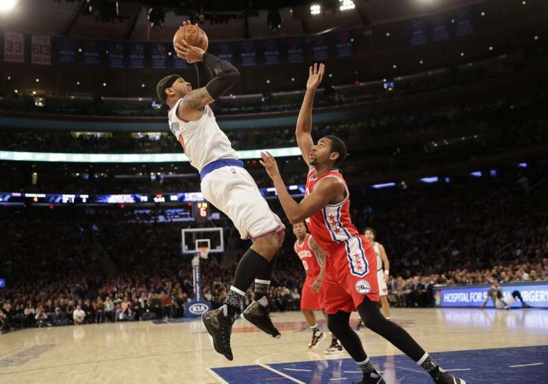 כרמלו אנת'וני קולע מעל פילדלפיה // צילום: איי.פי