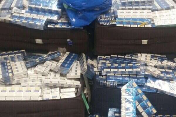ארזתם לבד? בודקי המכס בנמל התעופה בן גוריון סיכלו ניסיון הברחה של 220,600 אלף סיגריות - 1,130 פאקטים. הסיגריות הוסתרו במזוודות ובמטען של שני עולים חדשים מגיאורגיה ומשפחותיהם. המס על ייבוא כמות כזו של סיגריות עומד על כרבע מיליון שקלים.