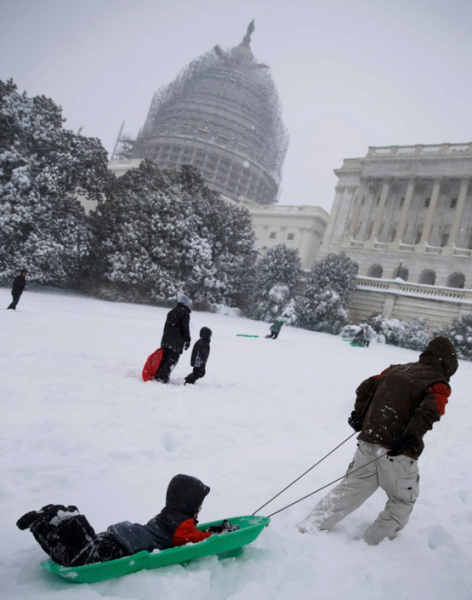 ילדים משחקים בשלג בוושינגטון הבירה // צילום: רויטרס