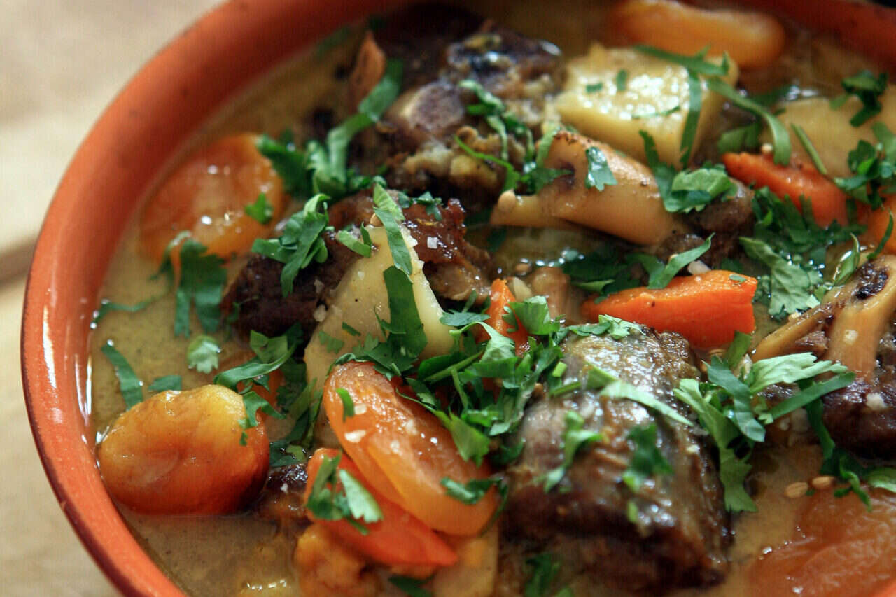 קדירת טלה עם קארי ומשמשים מיובשיםרשימת חומרים ל-6 מנות:לקישוט:אופן ההכנה: