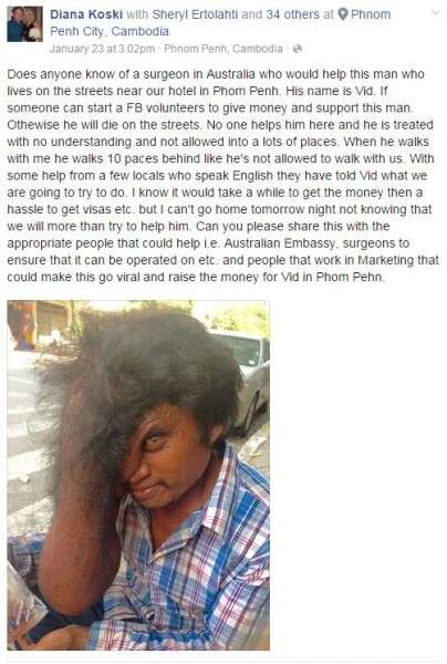 לאחר שהזוג קיבל את אישור ראש הכפר לסייע ל-ויד אם תמצא הדרך, הם החלו בקמפיין בפייסבוק במטרה לעזור לו למצוא מנתח.