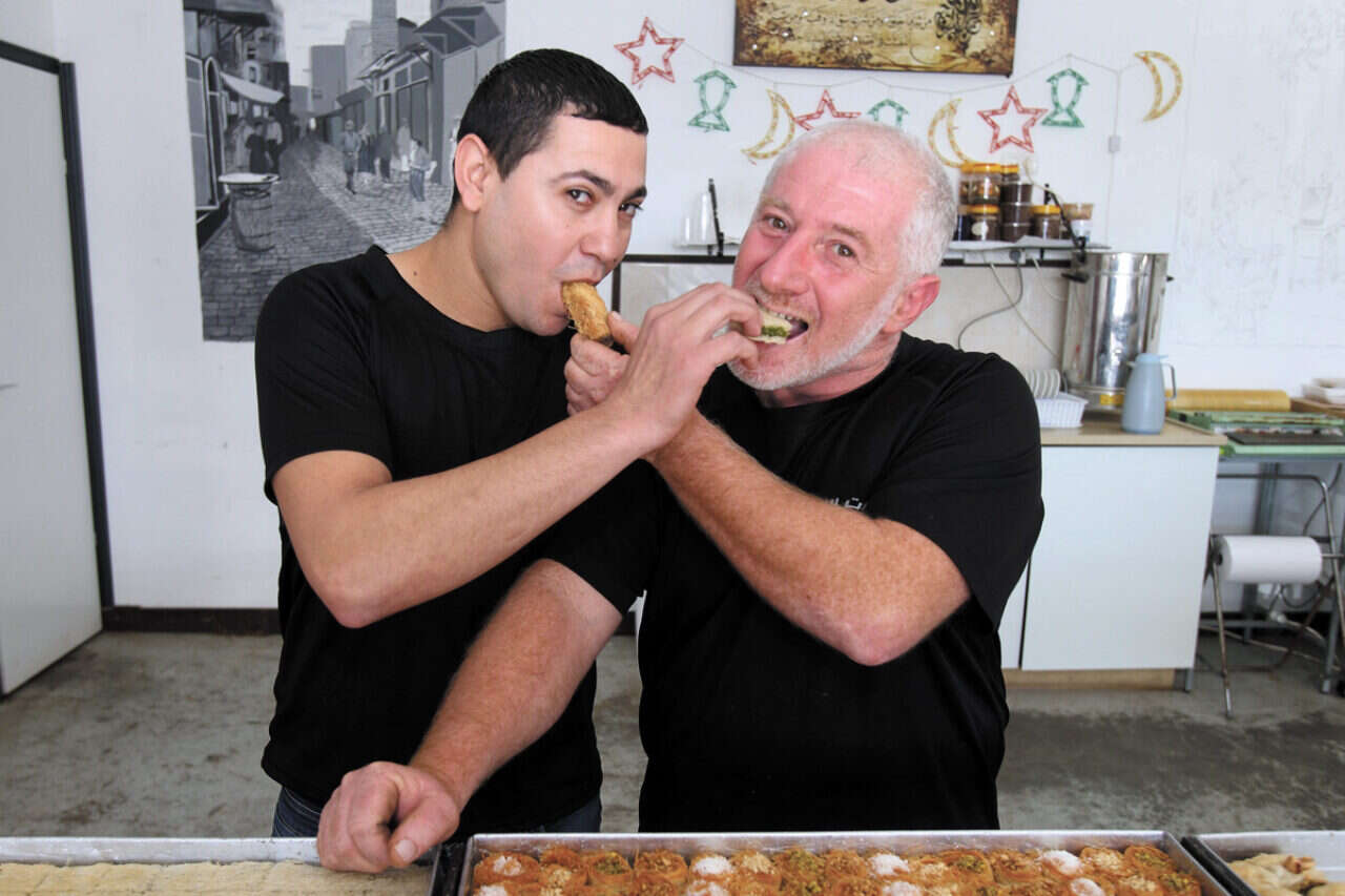 אומר גנאיים, הבעלים, מוסיף: "תראי, 90 אחוזים מהספקים שלי הם יהודים. אני מאמין גדול בדו־קיום ותורם להרבה עמותות וארגונים יהודיים של חסד. במיוחד בחג הפסח. אני מאמין שדרך נתינה ואהבה כל מחיצה תיפול וכל דלת תיפתח". לקונדיטוריה נכנסת ראדה ג'נאיים, מורה לעברית בתיכון נג'אח מרשת עתיד. "רוב הנשים פה הן דתיות מסורתיות שפוחדות לצאת, פוחדות לדבר ערבית, פוחדות מלינץ'. עצוב לי שהפחד קיים בשני הצדדים", היא מספרת.