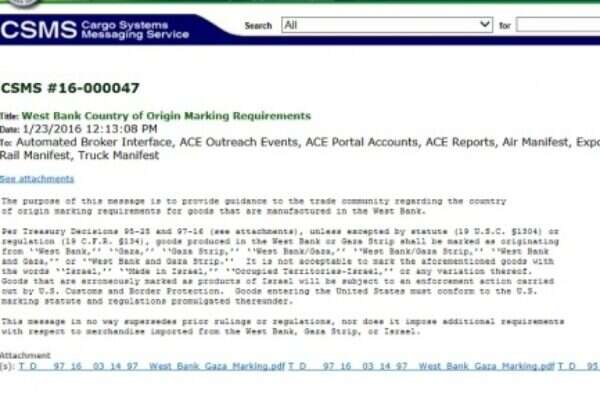 U.S. policy on labeling settlement products has not changed, the State Department confirmed on Thursday. Last week, the U.S. government reissued its guidelines on the labeling requirements for products manufactured in Judea and Samaria. The guidelines, which have been in effect since 1995, note that under U.S. law "it is not acceptable to mark the aforementioned goods with the words 'Israel,' 'Made in Israel,' 'Occupied Territories-Israel,' or any variation thereof." The decision to republish the guidelines raised some eyebrows, as it came several day after U.S. Ambassador Dan Shapiro criticized Israel's conduct in Judea and Samaria and accused Israel of discriminating Palestinians there. But State Department Spokesman Mark Toner insisted Thursday that the reissuing was designed to clarify the United States' policy on the matter following reports of mislabeling. "U.S. Customs and Border Protection reissued guidance on their marking requirements," he told reporters. "It in no way supersedes prior rulings or regulations and nor does it impose additional requirements with respect to merchandise imported from the West Bank, Gaza Strip or Israel." According to a Channel 1 report from Thursday, the reissuing was in response to Palestinian complaints that some Judea and Samaria products were being labeled as "Made in Israel," in violation of U.S. law. Toner appeared to confirm that. ""Our understanding is that there were allegations of mislabeling, around nine or 10 complaints," Toner said. "As you know, US guidelines don't differentiate between products produced in settlements or anywhere else in the West Bank." Israeli officials confirmed Thursday that there was no change in U.S. policy.