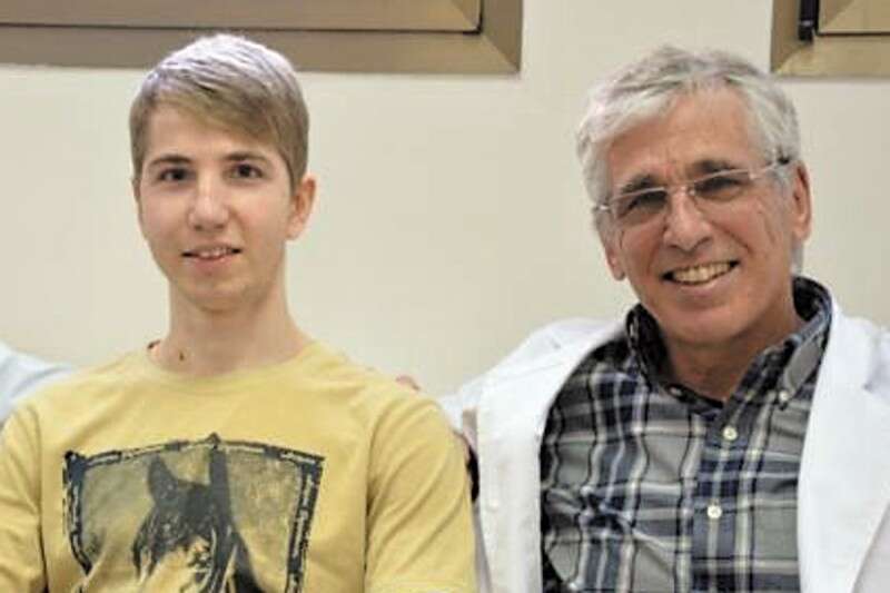 גרגורי (משמאל) עם פרופ' מור. ניצח את הכימותרפיה