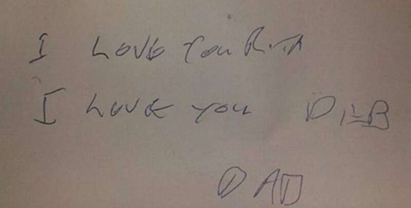 בנות משפחתו מצאו מכתב שהשאיר האב המנוח, ובו נכתב "אני אוהב אותך ריטה, אני אוהב אותך דב, אבא". המכתב מופנה אל שתי בנותיו של המנוח, ריטה ודברה. לדבריהן, הוא נכתב בזמן שהמתין לצוותי הרפואה.