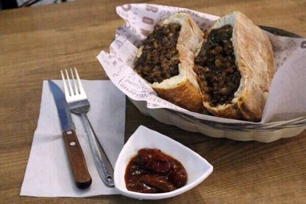 הזמנו גם "המבורגר שפוך" (42 ש"ח), שהוא הגרסה המיוחדת של המקום למנת הסלופי ג'ו המפורסמת. בשני חצאי ג'בטה, מוגש בשר טחון ברוטב שמזכיר את הרוטב של נתחי הסינטה, מתקתק ועם טעמים זהים. שוב בשר שעשוי היטב, אבל הפעם עם מעט יותר מדי נוזלים, מה שהופך את המנה ליותר קשה לתפעול, ובכל זאת, מדובר בסלופי ג'ו אז אם הזמנתם אותה תקרבו אליכם את המפיות ואל תתלוננו. הג'בטה, יאמר לזכותה, סופגת היטב את כל המרכיבים ובעלת אישיות קריספית מבחוץ ורכה מפנים. מומלץ להזמין בליווי פלפלי צ'יפוטלה (6 ש"ח) שמשתלבים מעולה עם הבשר ומעניקים למנה עוקצנות וטעם ייחודי.