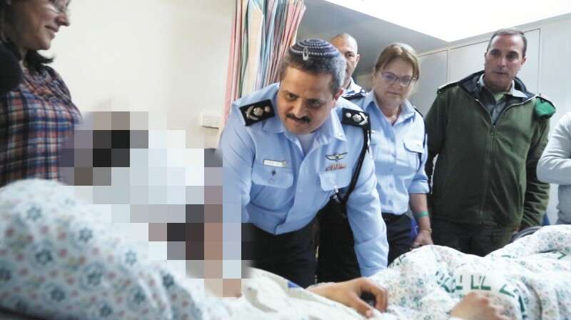 המפכ"ל אלשיך מבקר את השוטרת רווית בביה"ח // צילום: חטיבת דובר המשטרה