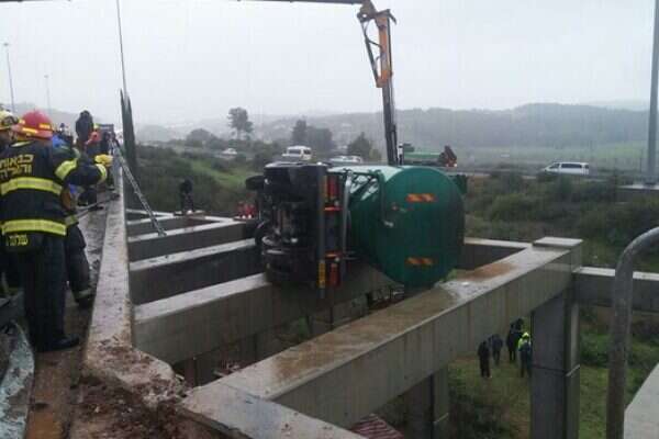 על חוט השערה: משאית סטתה מנתיב נסיעתה ונבלמה על קורות בטון. בעוד נהג המשאית חולץ, בתוך תא הנהג נותר נער צעיר, כבן 14, במשך שעה ארוכה בעוד לוחמי האש פועלים לחילוצו.
