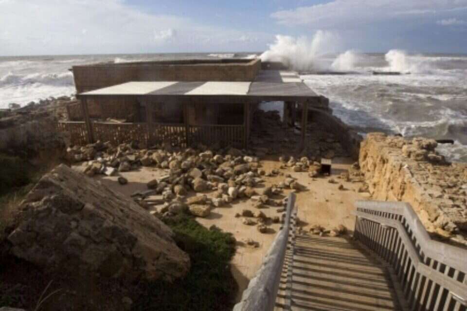 לפני שלושה חודשים, בלילה שבין 11 ל-12 בדצמבר 2010, פקדה את חופי ישראל סופה נדירה בעוצמתה. רוחות שבשיא עוצמתן הגיעו ל-120 קמ"ש הרימו את גלי הים עד לגובה של כ-14 מטרים. עוצמת הגלים המתנפצים עשתה שמות בכל ערי החוף והנמל העתיקות ובאתרים התת-ימיים הפרושים לאורך 197 ק"מ של חוף, מגבול רצועת עזה בדרום ועד לראש הנקרה בצפון. הסערה פגעה באשקלון, באפולוניה, בעתלית, בעכו ובעוד כחצי תריסר אתרי ארכיאולוגיה, אך פגיעתה הקשה ביותר היתה בקיסריה ובעתיקותיה: בנמל, בגן הלאומי ובאתרים רבים סמוכים נוספים, שבהם מבקרים מדי שנה כמיליון איש. הקיר על המזח הדרומי קרס ונשטף לתוך הנמל. המזח עצמו נבקע לשלושה חלקים לפחות ובטונדות במשקל של מאות קילוגרמים כל אחת התעופפו כניירות ברוח וניפצו כל מה שנקרה בדרכן. הגלים והרוחות טילטלו ממקומם אפילו את הסלעים הכבדים שהוצבו כדי להגן על הפסיפסים בארמון השונית, ארמונו של הורדוס, בונה קיסריה, והם ניפצו את הפסיפסים שעליהם היו אמורים להגן. פניהם החיוורות של אנשי החברה לפיתוח קיסריה ואנשי רשות העתיקות, שביקרו במקום למחרת, אמרו הכל. רק חמישה שבועות קודם לכן הם עמדו בוועדת הפנים של הכנסת מול נציגי משרד רה"מ ותיארו בדיוק את העתיד להתרחש. מנכ"ל רשות העתיקות שוקה דורפמן דיבר אז על "קטסטרופה" צפויה. הוא גילה כבר באותו מעמד שהמים חותרים תחת מונומנטים עתיקים ונדירים וגם תחת מסעדות ונקודות שירות אחרות לתייר, וכי קומפלקסים שלמים בקיסריה העתיקה עומדים להתמוטט בכל רגע. "בשם העתיקות אני אומר לכם: קיסריה נעלמת", אמר דורפמן לחכי"ם. הוא ואנשי המקצוע מהחברה לפיתוח קיסריה ומרשות הטבע והגנים התחננו באותו מעמד לתקציב חירום בסך 6 מיליון שקלים, כדי לייצר קו הגנה לקראת החורף הקרב, אבל אנשי משרד ראש הממשלה דחו אותם, מסיבות שאליהן עוד נגיע. הים נטל פיסות היסטוריה עתה, על כל פנים, חמישה שבועות אחרי, היו הנזקים חסרי תקדים: ארמון הורדוס הבנוי על שונית הבולטת לתוך הים ניזוק קשות ופסיפס היעלים היפהפה נופץ מהסלעים הכבדים שהים סחף ומגג מגן שהתמוטט עליו. הנמל העתיק של קיסריה שהורדוס בנה לפני כ-2,000 שנה לכבוד פטרונו אוגוסטוס קיסר נפגע אף הוא. אבנים נשרו מקירות. מים חתרו מתחת לשרידים עתיקים. שרידי רחוב, מצוק ומערכות ניקוז עתיקים התמוטטו וקירות ואבנים נסחפו לים. גם שרידים מהעיר הרומית ומחומת הורדוס נסחפו חלקית לים, וחלק משרידי החומות שקעו עוד. מכאיבה במיוחד היתה הפגיעה באחד מסמליה של קיסריה העתיקה, מערכת אמות המים הגבוהה מבין השלוש הקיימות, זו שהובילה את מי השתייה מהמעיינות במורדות הדרומיים של הכרמל לכיוון קיסריה, וגם האמות הנמוכות שהובילו מי השקיה - עורערו קשות. גם תשתית התיירות שהוקמה באתר לטובת המוני המבקרים ניזוקה. מגרש החניה שליד אמת המים נשטף ונסחף לים. שתי מסעדות ניזוקו קשה. מועדון הצלילה נפגע גם הוא. מעבר לנזקי הגלים שהסתייעו ברוח העזה, נטלה הסערה עימה אל הים רצועת חול בגובה של כ-2.5 מטרים, וחיסלה למעשה את אחד מחופי הרחצה היפים בארץ. "החול הזה שהים נטל לתוכו", הסביר השבוע קובי שרביט, מנהל היחידה לארכיאולוגיה תת-ימית ברשות העתיקות, "שימש כבולם זעזועים והקהה מעוצמת החבטה של הגלים בקו העתיקות. ברגע שהסערה של דצמבר נטלה את החול, כל קו העתיקות חשוף עתה פי כמה לסערות קטנות בהרבה בעוצמתן, וכבר לפני שבועיים בסערה קטנה בהרבה בעוצמתה רשמנו גל נוסף של נזקים, ומי יודע מה יקרה בסוף השבוע הזה". בעקבות הסערה, נסגר הגן הלאומי קיסריה למבקרים, ונפתח חלקית רק לאחר חודש. החברה לפיתוח קיסריה השקיעה מתקציבה בעיקר בטיפול קוסמטי, אבל ההרס העצום עדיין ניכר לעין. 6 מיליון שקלים שהוגדרו כתקציב חירום הכרחי, חמישה שבועות לפני הסערה, תפחו אחרי הסערה ל-10 מיליון. ערב הסערה הבאה, שכבר נמצאת כאן, ושפגיעתה צפויה להיות קשה אף יותר, מתכתשים משרדי הממשלה ביניהם מי יביא את הכסף. בינתיים, כפי שהגדיר זאת דורפמן: קיסריה שוקעת. כשביקרנו שם השבוע ראינו כיצד ג