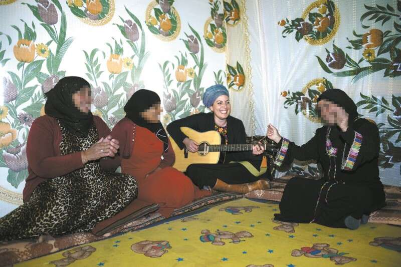 בחוץ אני אומרת לה, תנגני. היא פורטת על הגיטרה וארבעתן מחייכות למצלמה, אבל לא שרות. אני מבקשת שישירו, והמרחב סביבנו ריק מאדם. הן מסרבות; גברים יכולים לשמוע. המרחק למקבץ האוהלים הבא גדול, אבל המוסכמה מוחקת אותו: נשים לא שרות בחוץ. וגם השקט המדברי שולח את הקול רחוק יותר.