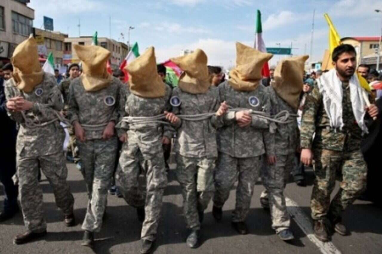 At one rally, a group of demonstrators reconstructed an incident from last month of 10 American sailors taken into Iranian custody. The sailors were captured after two of their boats mistakenly entered Iranian territorial waters; they were released the next day.
