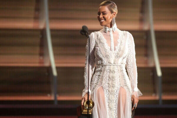 גאווה ישראלית על במת טקס הגראמי. ביונסה מעניקה פרס בשמלתה של ענבל דרור (צילום: AP)