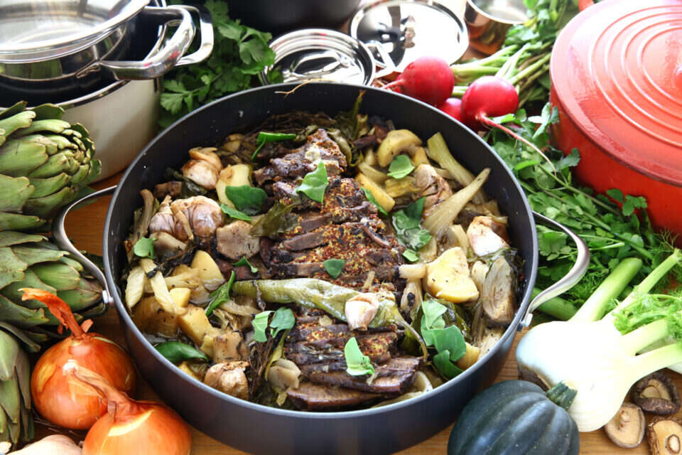 צלי בקר עם שומר, ארטישוק ירושלמי ושאר ירקות חורף