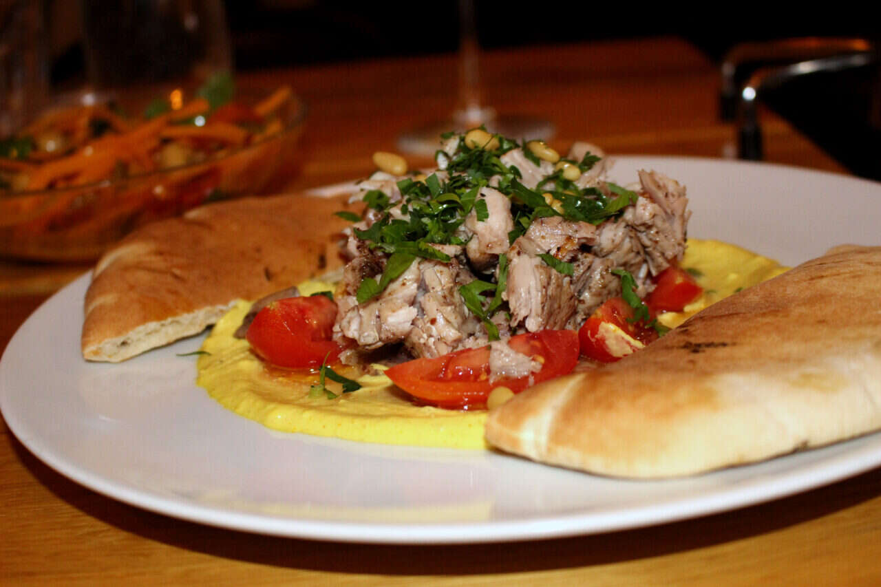 ובחזרה לכולא, המסעדה המארחת. הזמנו לשולחן לחם טרי שנאפה בטאבון (21 ש"ח), לחם מחמצת משגע מהסוג שגורם לך להיות שבע עוד לפני העיקריות. הוא הוגש עם קערה קטנה של טחינה ופלפלים חריפים בשמן זית, ממרח גאוני של לימון כבוש וקצת שמנת חמוצה. קערה כל כך מענגת שעושה חשק לעבור לגור בתוכה.
