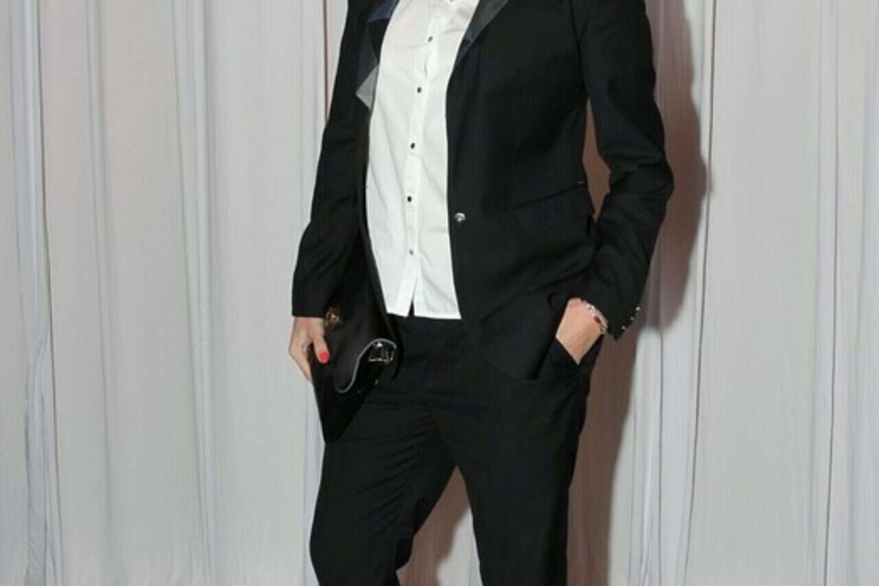 נטלי דדון מסתירה בטן של הריון ראשון במראה גברי ומגניב, שונה מהמראה החשוף והאדג'י שדדון מראה להיראות איתו. אני אוהבת נשים שמתלבשות בצורה גברית, לדעתי מדובר בסקסיות שמתפרצת יותר מכל מיני או מחשוף. דדון הלכה על מראה גברי-נשי קלאסי: מכנסיי צ'ינו מחויטים שחורים, חולצה לבנה  מכופרת וז'קט מחויט. נעלי העקב מוסיפות את הנגיעה הנשית הנדרשת.