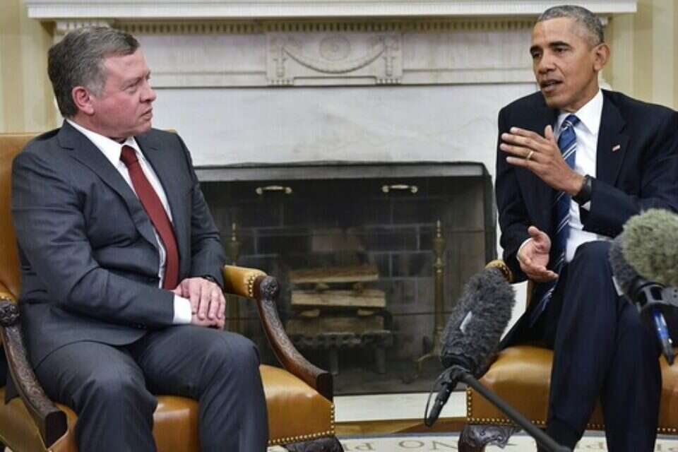 הנשיא ביקש לחזק את עבדאללה מלך ירדן, כינה אותו "קול של הגיון ושל סובלנות", והוסיף "יש לנו מזל שיש לנו בת ברית כמו ירדן". עוד שוחחו השניים על מצב וצורכי הפליטים הסורים שנמלטו לממלכה ההאשמית הסמוכה. כ-630 אלף פליטים סורים נמלטו לירדן בחמש השנים האחרונות.