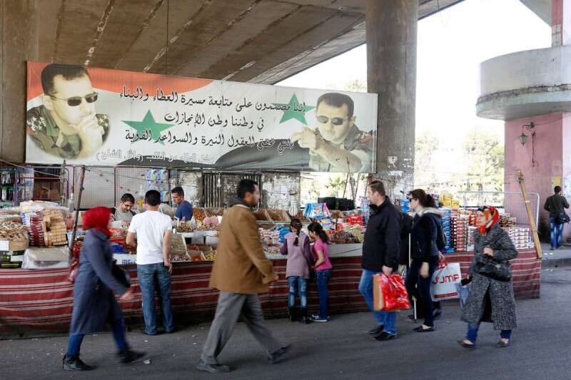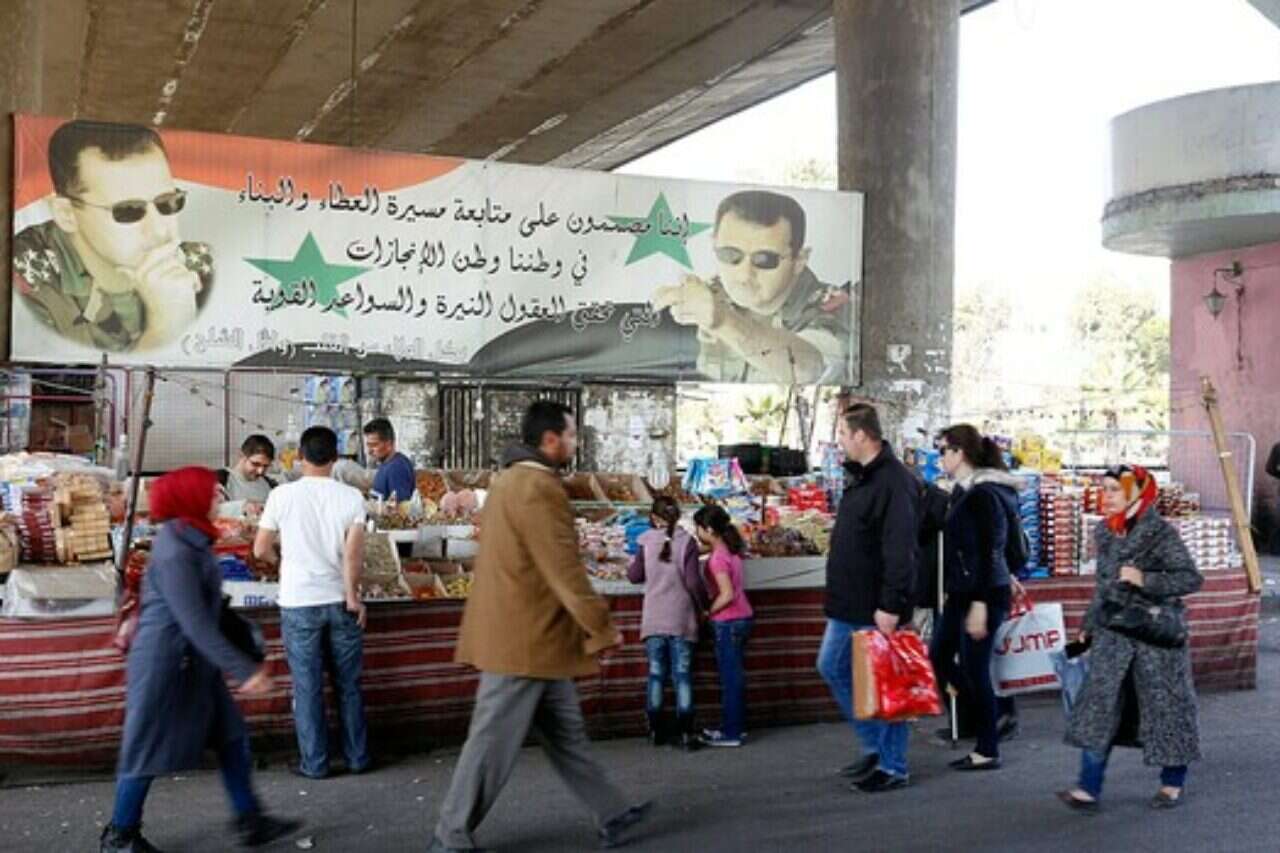 תושבי דמשק בשוק אתמול, אחרי כניסת הפסקת האש לתוקף // צילום: אי.פי.אי