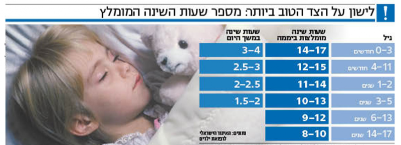 לפני כשנה פירסם איגוד רופאי הילדים האמריקני הנחיות משלו בנושא משך שעות השינה לילדים. המומחים הישראלים פרופ' אשר טל מבית החולים סורוקה, ד"ר ריבי טאומן ופרופ' יעקב סיון מבית החולים איכילוב וד"ר יהודה סנצקי וד"ר גילי קדמון מבית החולים שניידר, אימצו את ההנחיות האמריקניות אך הוסיפו עתה דגשים נוספים, למשל, בנוגע לשנת צהריים בגנים.