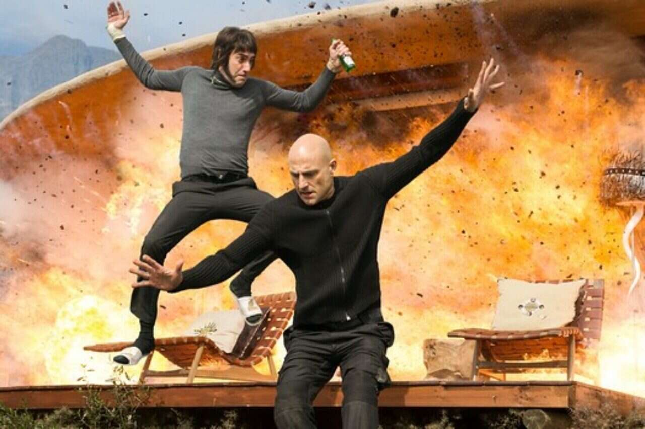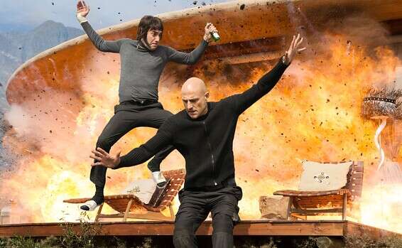 ברון כהן ומארק סטרונג ב"גרימסבי". שריפה, אחים, שריפה // צילום: פורום פילם