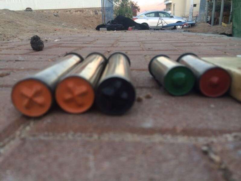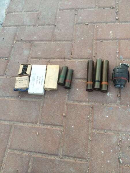 חבלן משטרתי שהגיע למקום מצא בתוך הפח 5 כדורי זיקוקים ישנים, כדורי 9 מ"מ ו 5.56 ורימון מס 4, רימון משנות ה-50.