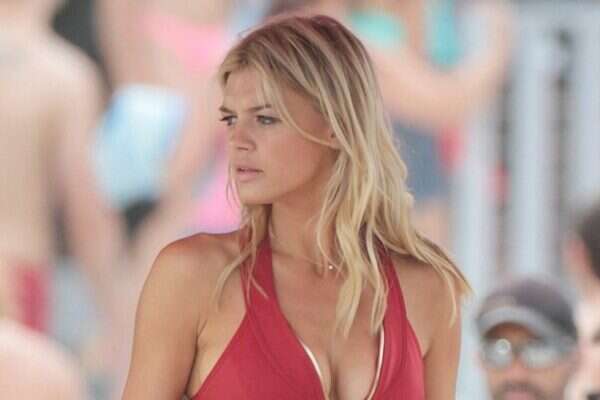 קלי רוכבך על סט משמר המפרץ // צילום: טוויטר // קלי רוכבך על סט משמר המפרץ