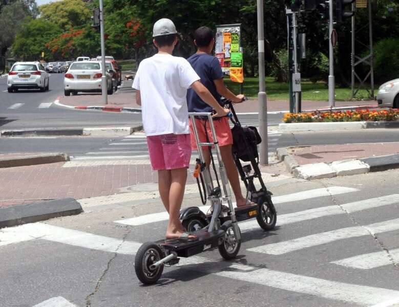 נערים על קורקינט חשמלי. המהירות תוגבל (למצולמים אין קשר לידיעה) // צילום: רוני שיצר