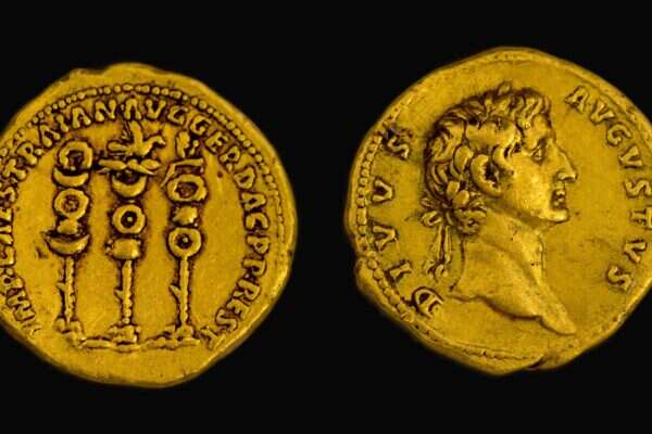 "מדובר במטבע נדיר בקנה מידה עולמי, שנטבע ברומא בשנת 107 לסה"נ. בצד אחד רואים את הסמלים של הלגיונות הרומיים לצד שמו של השליט טריאנוס, ובצד שני - במקום דיוקנו של הקיסר טריאנוס עצמו, כפי שהיה נהוג בד"כ, מוצג הדיוקן של הקיסר "אוגוסטוס האלוהי". אמר ד"ר דני שיאון, חוקר מטבעות בכיר ברשות העתיקות.