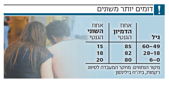 החוקרים מצאו שהפרופיל הגנטי של המבוגרים בישראל שונה מהפרופיל הגנטי של הצעירים ושונה באופן ניכר בהשוואה לאוכלוסיית הילדים והתינוקות, עד כדי מציאת ביטויים גנטיים חדשים באוכלוסייה הצעירה, שלא קיימים באוכלוסייה המבוגרת.