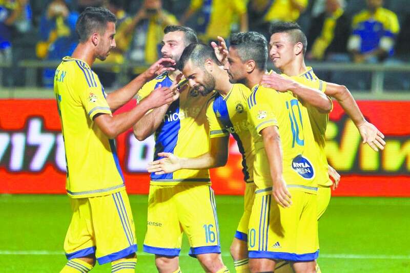 שחקני מכבי. מודים שהם משחקים הרבה יותר התקפי תחת בוס // צילום: עמי שומן