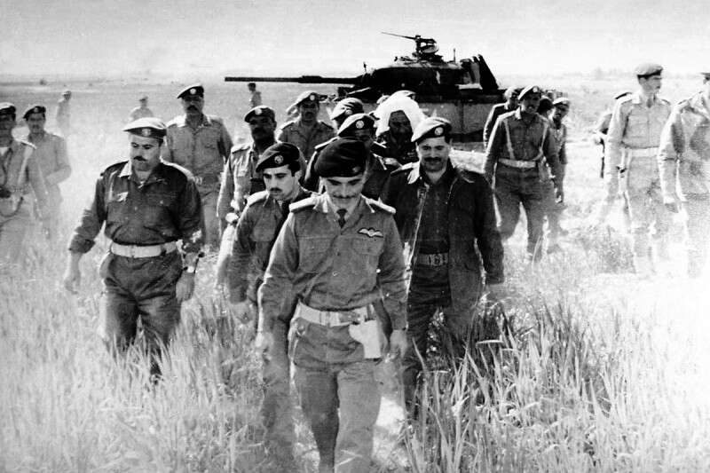 ב־21 במארס 1968 יצא צה"ל לפעולה נרחבת בכפר הירדני כראמה שבדרום בקעת הירדן המזרחית, במסגרת פשיטה על מפקדת פת"ח במקום, שבראשה עמד יאסר ערפאת. בתום הקרבות (שכללו גם פעולה באזור דרום ים המלח) נהרגו 61 לוחמים ירדנים, 128 הרוגים מהארגונים הפלשתיניים ו־33 חיילי צה"ל. ערפאת עצמו הצליח להימלט. בתמונה: המלך חוסיין באזור הקרבות, ומאחוריו טנק צה"ל.