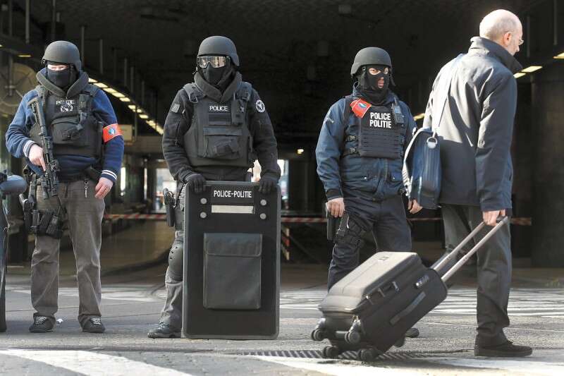 שוטרים בפתח תחנת רכבת בבריסל // צילום: רויטרס