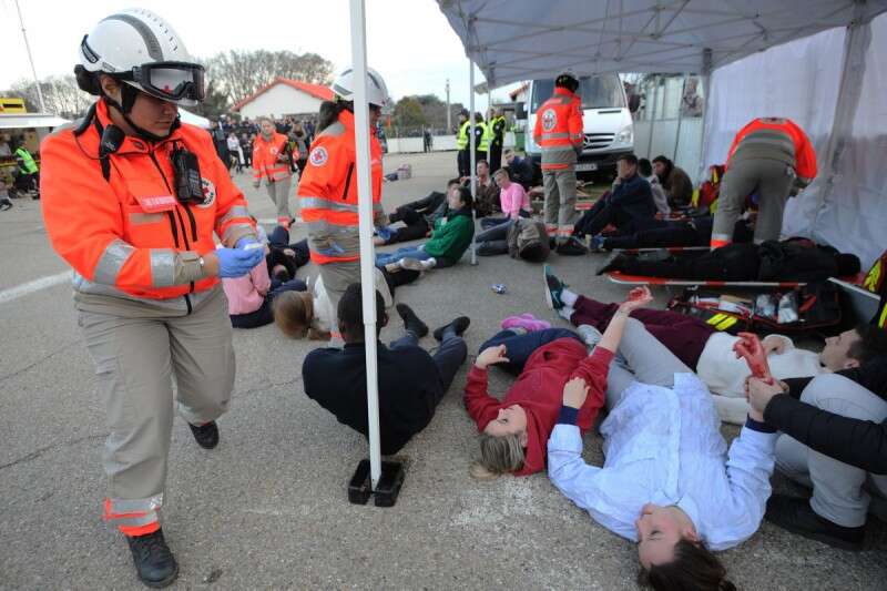 תרגיל שמדמה פיגוע באצטדיון כדורגל בצרפת. המארגנים בלחץ // צילום: אי.אף.פי