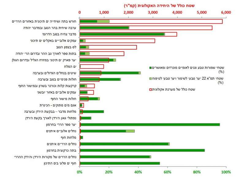 גרף המדגים את השטחים המוגדרים שמורות טבע במערכות אקולוגיות בישראל // צילום: מתוך המחקר