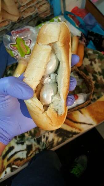 הבלשים שערכו חיפוש בדירה הבחינו בשקית ובה מספר לחמניות תמימות למראה. בבדיקת התכולה הבחינו כי ישנן לחמניות כבדות מעבר למצופה.