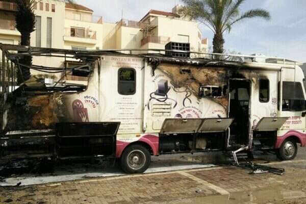 טנק המצוות החרוך, הבוקר // צילום: ניידות חב"ד
