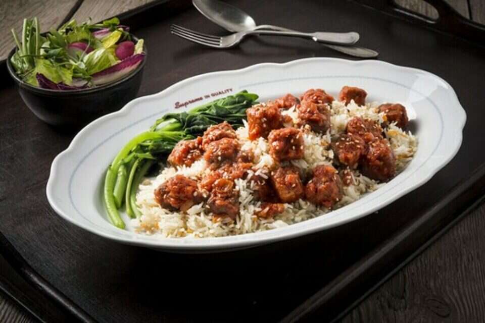 • תבשיל צרפתי בשורשים ויין - רצועות סויה, ירקות שורש ופטריות טריות מוקפצות בשום בצל מקורמל, יין אדום ורוזמרין. מוגש עם האורז של לנדוור וסלט ירוק. מחיר: 59 ₪.
