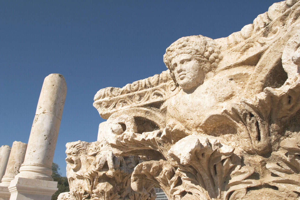 הפסל היחיד של מלך מצרי בגודל טבעי שהתגלה בארץ, פסל רעמסס, התגלה במצודה המצרית שהיתה באותה עת בבית שאן. על כתפיו של הפסל חקוקים שמותיו של המלך. במרכז ארמונו של המושל המצרי בבית שאן השתרע אולם מרכזי, שבו נחשפו שני בסיסי עמודים מרשימים. שתי כותרות העמודים שוחזרו במעבדות המוזיאון וניצבות בתערוכה. כותרות דומות רווחו מאוד במצרים; הן מדמות תפרחת פתוחה של גומא הפפירוס. שתי הכותרות נחשפו יחדיו בחפירות שערכה בתל בית שאן משלחת מטעם אוניברסיטת פנסילבניה, אך כבר בתקופת המנדט הבריטי הן הופרדו זו מזו; האחת הועברה למוזיאון רוקפלר בירושלים, שם אוחסנה ומעולם לא הוצגה, והשנייה הושארה בתל בית שאן ובמהלך השנים נפגעה מאוד. לרגל התערוכה אוחדו מחדש שתי הכותרות.