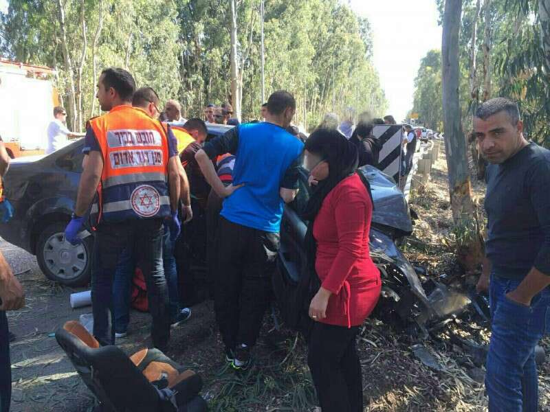 התאונה הקשה שבה נפצעו הילדים התרחשה בשעות אחר הצהריים, כאשר רכב פרטי ובו ארבע נשים ובן 5 התנגש בעץ סמוך לקיבות בחן שבשרון. חובשים ופרמדיקים של מד"א העניקו טיפול רפואי לחמש הפצועות, בהן כאמור שלושת הילדים שנפצעו קשה, ו-2 נשים, בנות 29 ו-39, במצב בינוני. הפצועות פונו על ידי צוותי מד"א לבתי החולים הלל יפה, לניאדו ומאיר. לאחר מאמצים של הצוות הרפואי נקבע מותו של אחד הילדים, בן 6, בבית החולים.