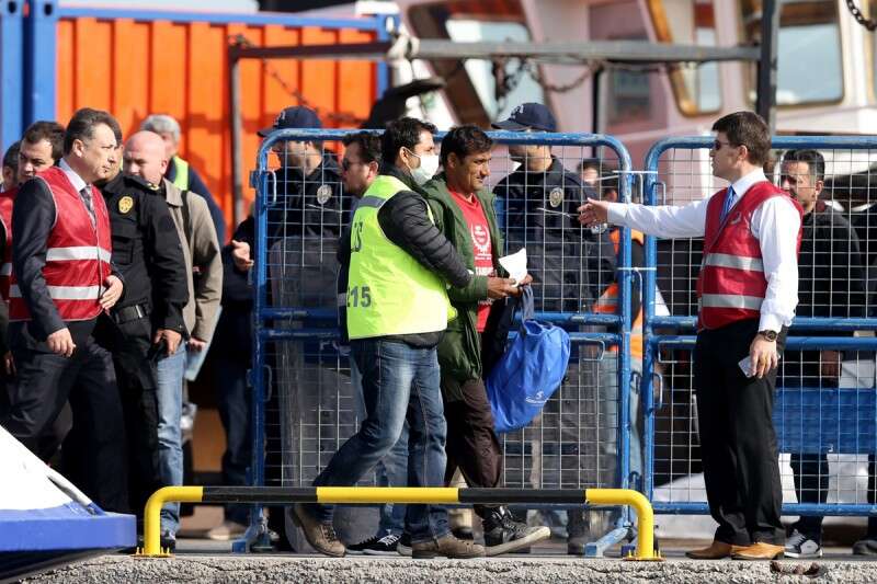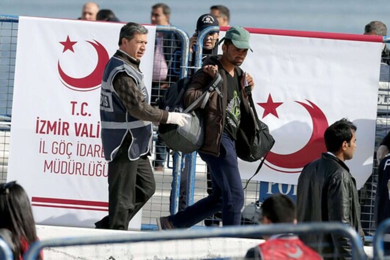 מעבורת ראשונה עמוסת במהגרים לא חוקיים יצאה הבוקר (שני) מהאי לסבוס שביוון ועגנה בעיר הנמל הטורקית דיקילי, במסגרת ההסכם השנוי במחלוקת בין האיחוד האירופי לאנקרה, כך על פי סוכנות הידיעות איי.אף.פי. על המעבורת עשרות מהגרים, רובם מפקיסטן ובנגלדש. עשרות שוטרים ומתנדבים של הצלב האדום המתינו להם לאורך הרציפים, ושני מתנגדים למדיניות גירוש המהגרים הניפו כרזה עליה נכתב באנגלית: "עצרו את הגירוש, פיתחו את הגבולות".