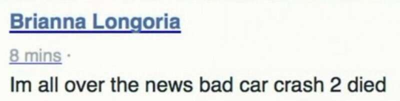 הרצון ללייקים וחשיפה ציבורית מביאה אנשים לכדי חוסר רגישות משווע – ונדמה ששום דבר אינו עוצר את הגולשים, גם לא מוות של שני אנשים, שנגרמו בעקיפין או ישירות, בגללם. ביום חמישי האחרון, בריאנה לונגוריה, אמריקנית בת 18 מקליפורניה, הייתה מעורבת בתאונת דרכים קטלנית בה נהרגו שני בני אדם.