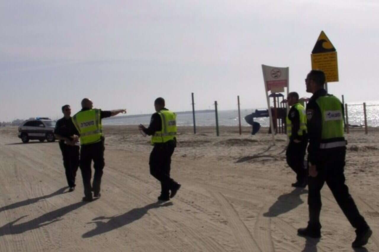 כוחות משטרה בחוף בר כוכבא באשקלון, במסגרת תרגיל "נחשול כחול"