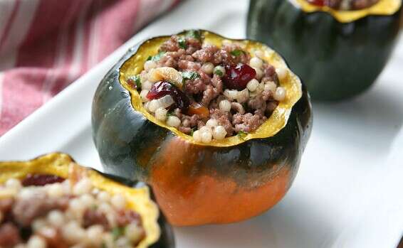 מיני דלעת ממולאת פתיתים, עגל טחון, שקדים וחמוציות