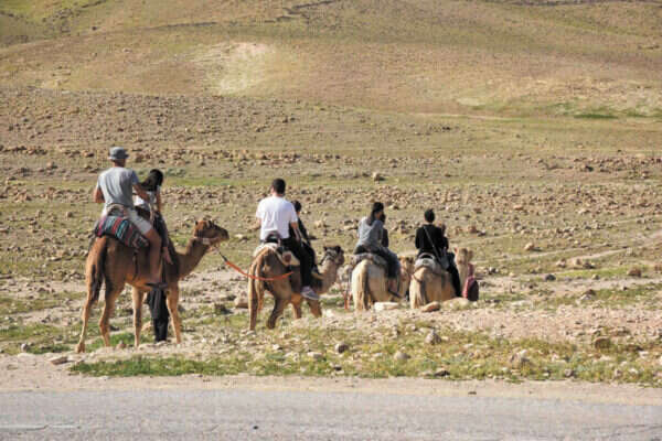 נסענו בדרך המדברית, שבתקופה זו מוקפת בגבעות ירוקות, שאת עשביהן הרכים, שבעוד כמה שבועות ייעלמו, מלחכים עדרי גמלים. באחד העדרים התמוגגנו לראות בכר לבן שאך נולד, יונק חלב מאמו הנאקה. היא מצידה מעלה גרה ומשתוממת למראה שיירת המכוניות שבתוכה פרצופינו המחייכים. כמה יפה הוא המדבר.